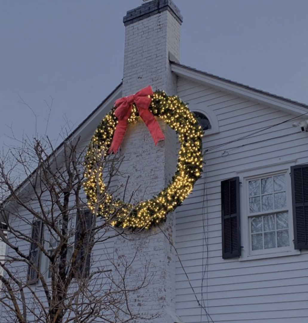A 10 foot beautifully illuminated wreath sculpture designed to enhance entrances, walkways, and festive décor.