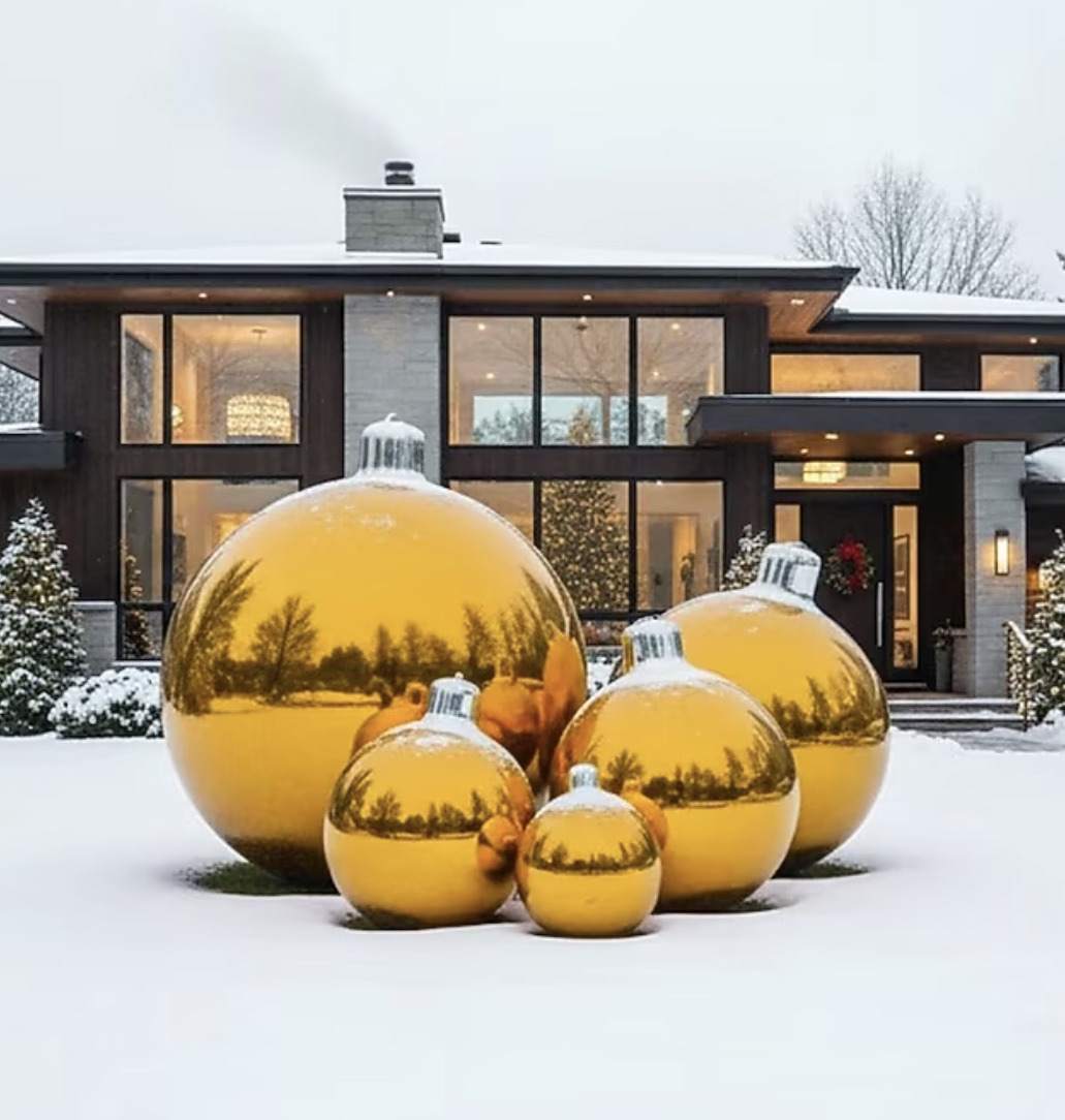 A 2 foot by 3 foot by 4 foot set of elegant gold ornaments that add a warm, festive sparkle to any holiday display.