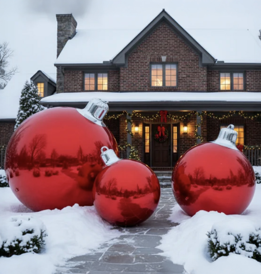 A 2 foot by 3 foot by 4 foot bright, oversized ornament sculpture designed to create a festive entrance or decorative focal point.